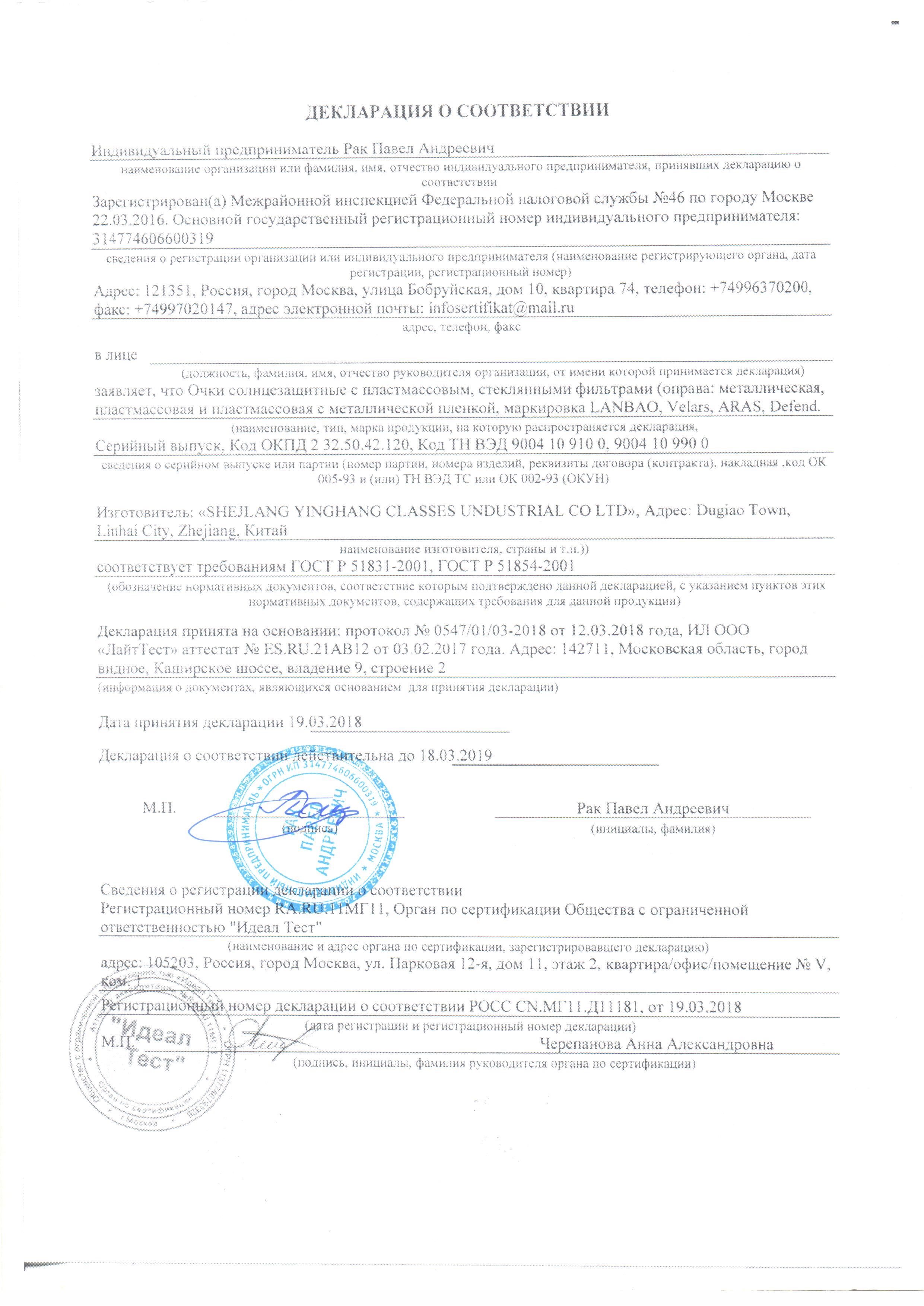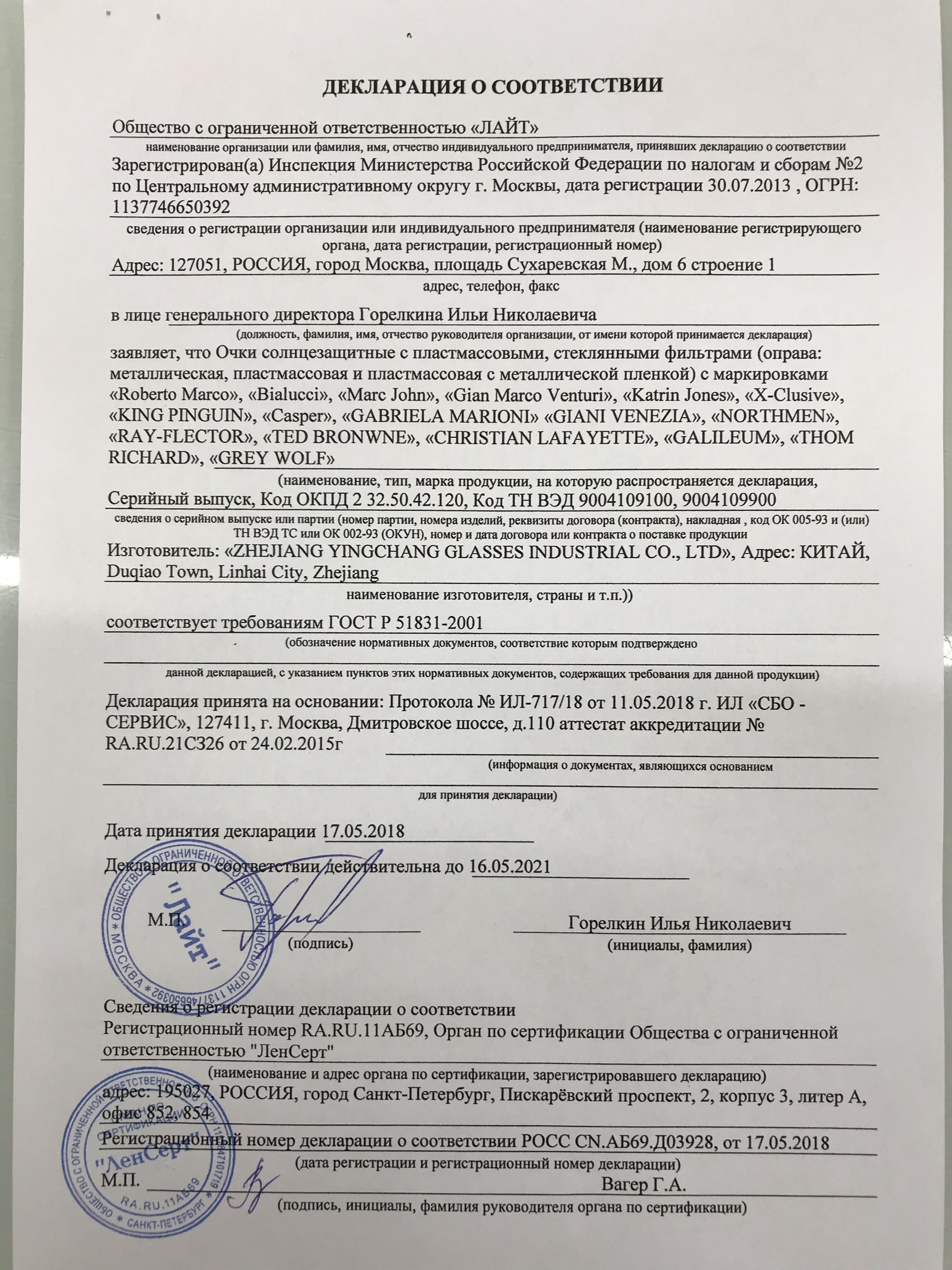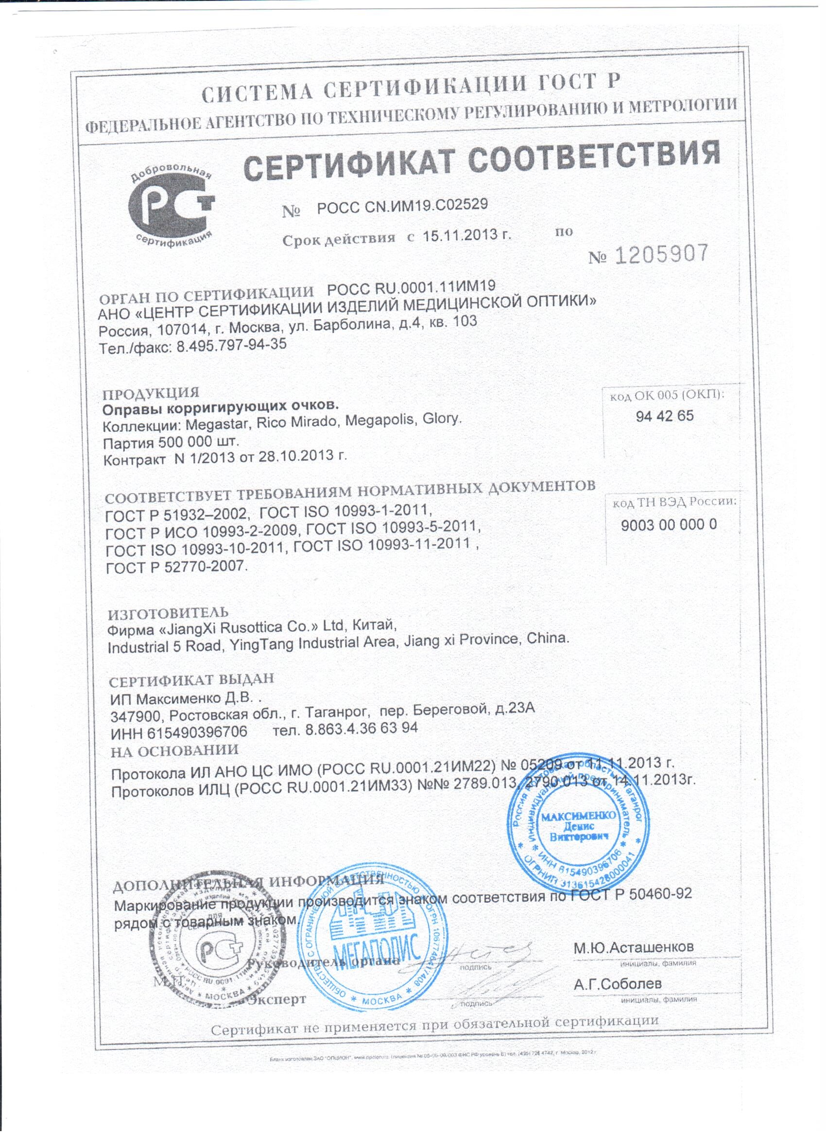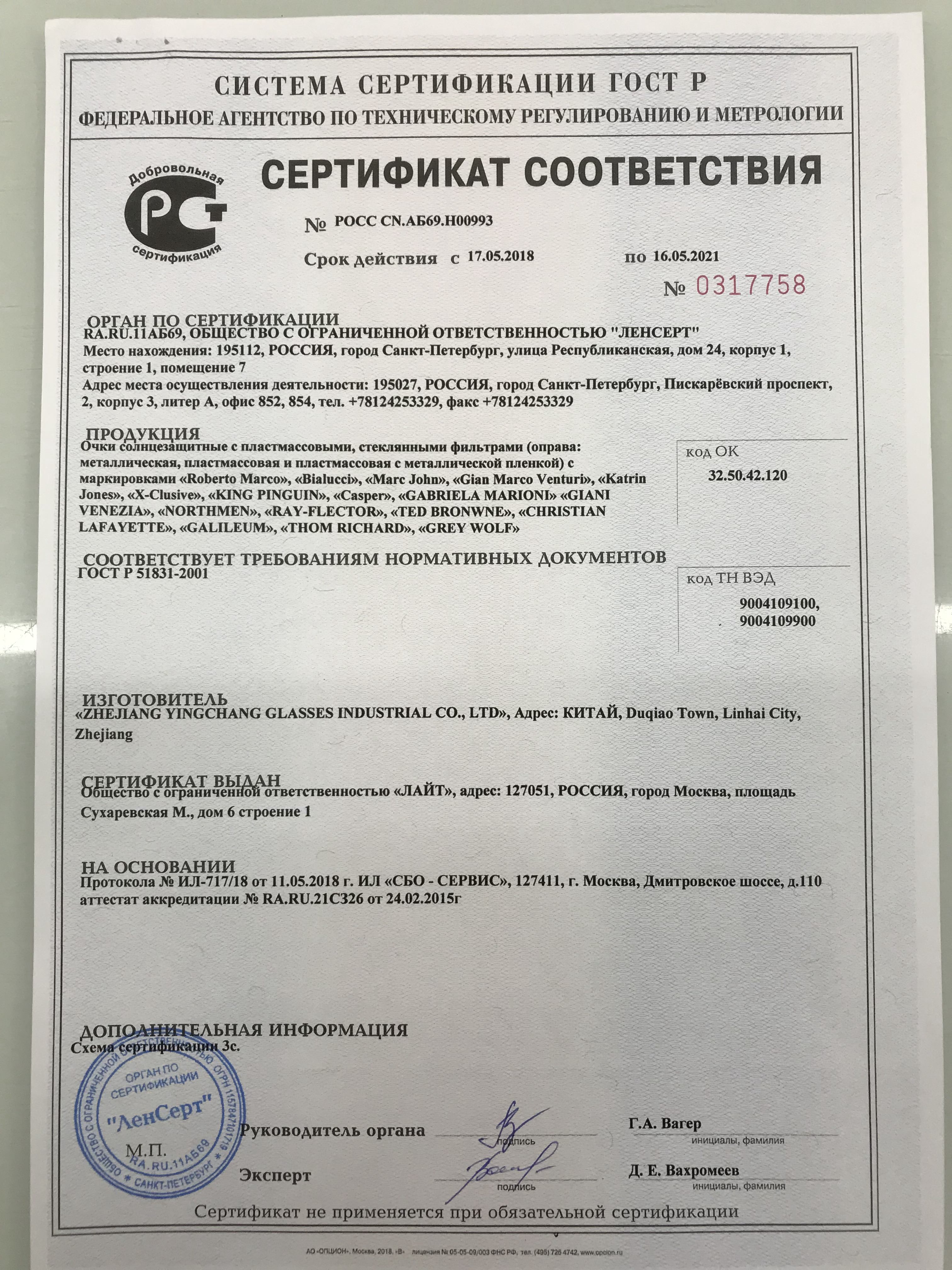 СЕТРИФИКАТЫ